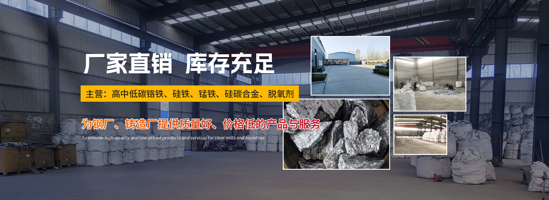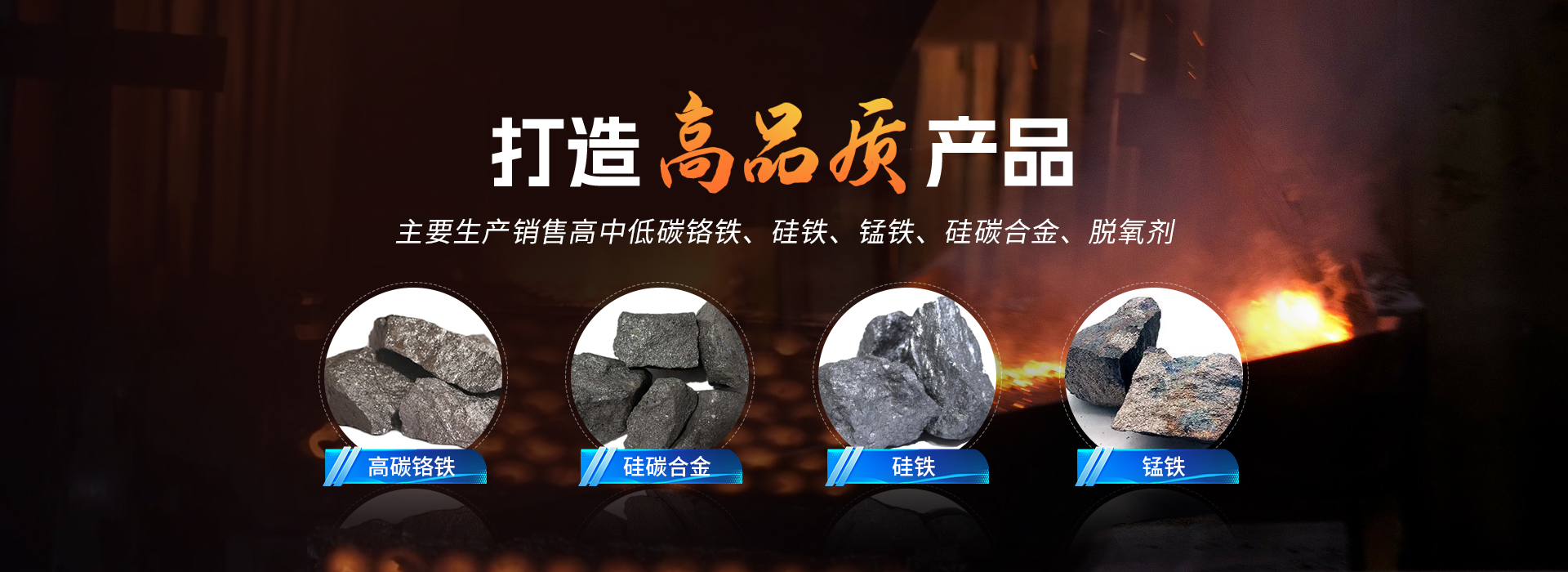 主要生產和銷售高中低碳鉻鐵,硅鐵,錳鐵,硅碳合金,脫氧劑。